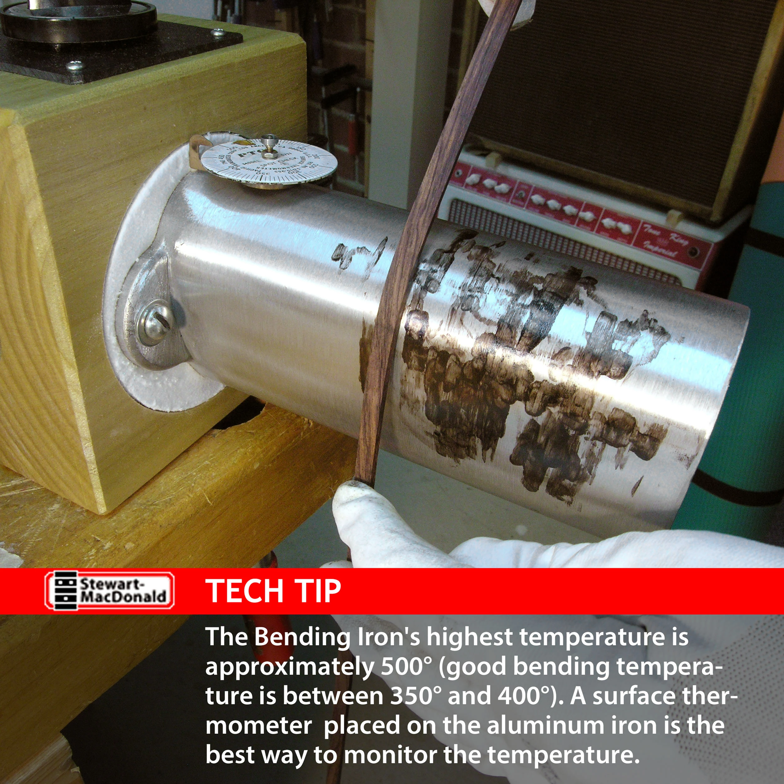 Variable temperature and versatile bending radii. Here’s a well-made iron that’s ideal for bending wet or steamed sidewood in the small shop.