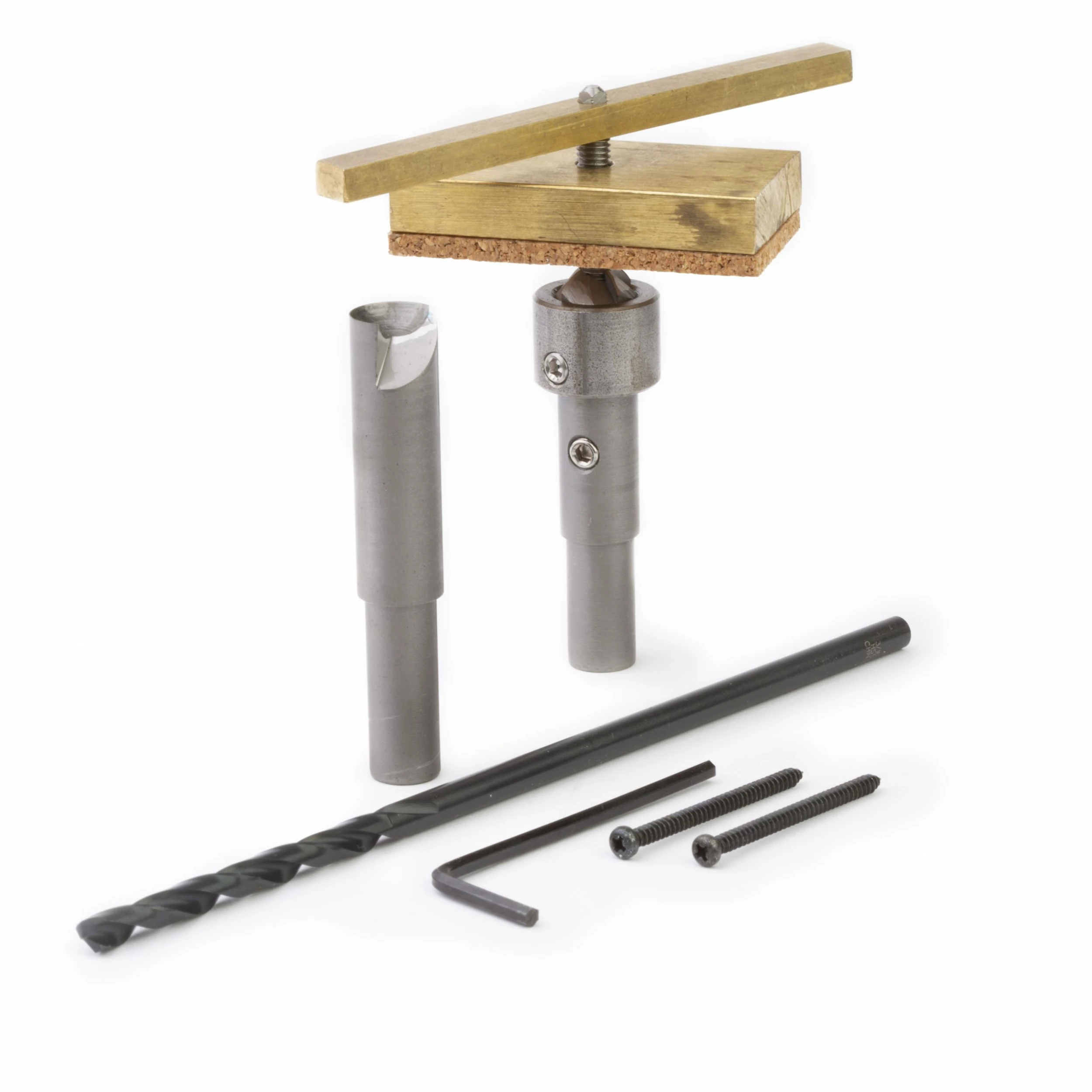 A money-making tool that can pay for itself with the first job! Special cutters form precisely dished cavities in the bridge plate, and matching wooden plugs.
