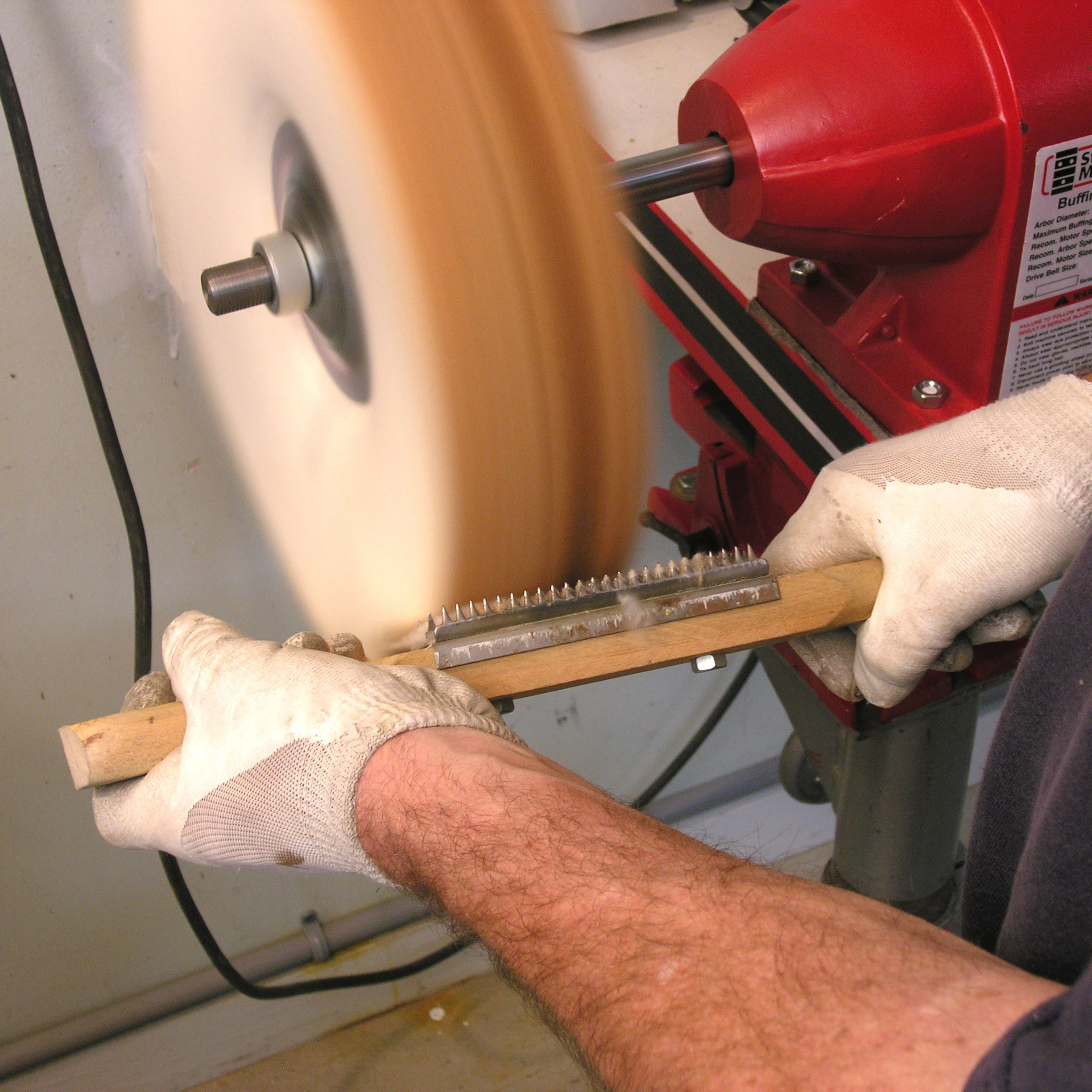 Use the rake to clean off old compound and rejuvenate and prepare the buffs for more compound. A must for your buffing arbor!