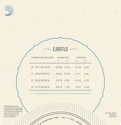 D’Addario EJ99TLG sets are designed for use with tenor ukuleles utilizing our exclusive Pro-Arté’ Carbon material. This is an all carbon material set and is optimized for ukuleles tuning to low G.