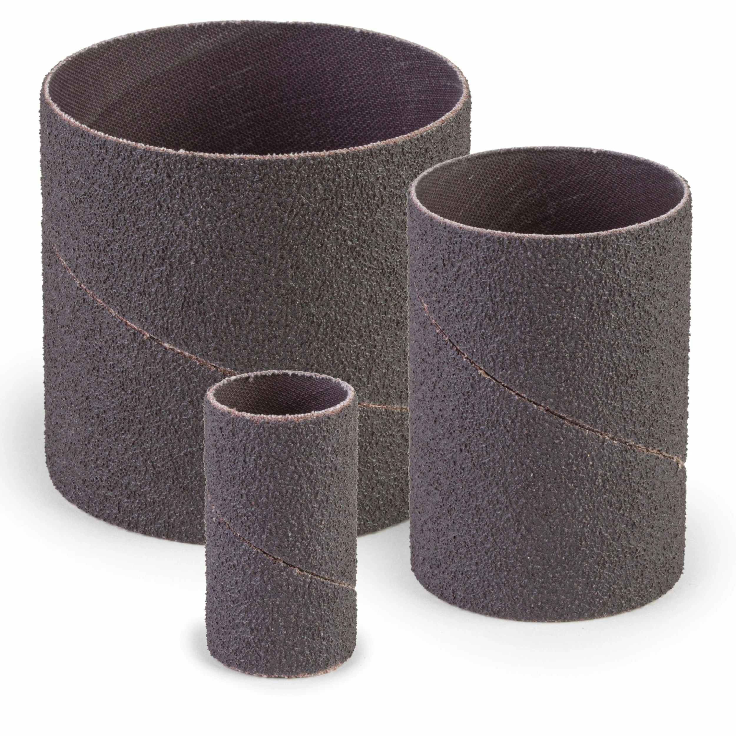Each durable sleeve features resin-bonded aluminum oxide mounted on a heavy cloth-backed core.