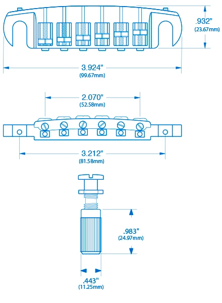 Locking posts couple the bridge to the guitar body for rich dynamics, overtones and sustain. The height-adjustable posts fit flat or archtop solidbodies. A low-profile wrench is included for tightening.