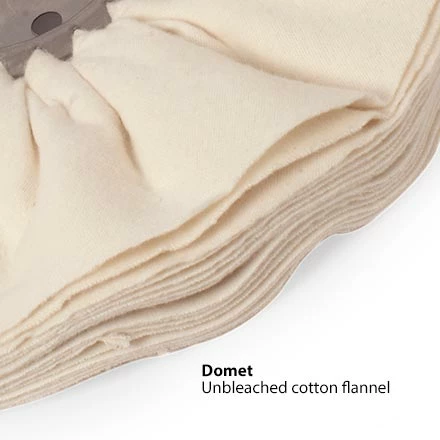 Domet cotton is the very softest available. Use Domet flannel with fine compound to get an extra-high gloss. A versatile buffer setup uses Canton wheels on one side (Medium compound) and Domet on the other (Fine compound).