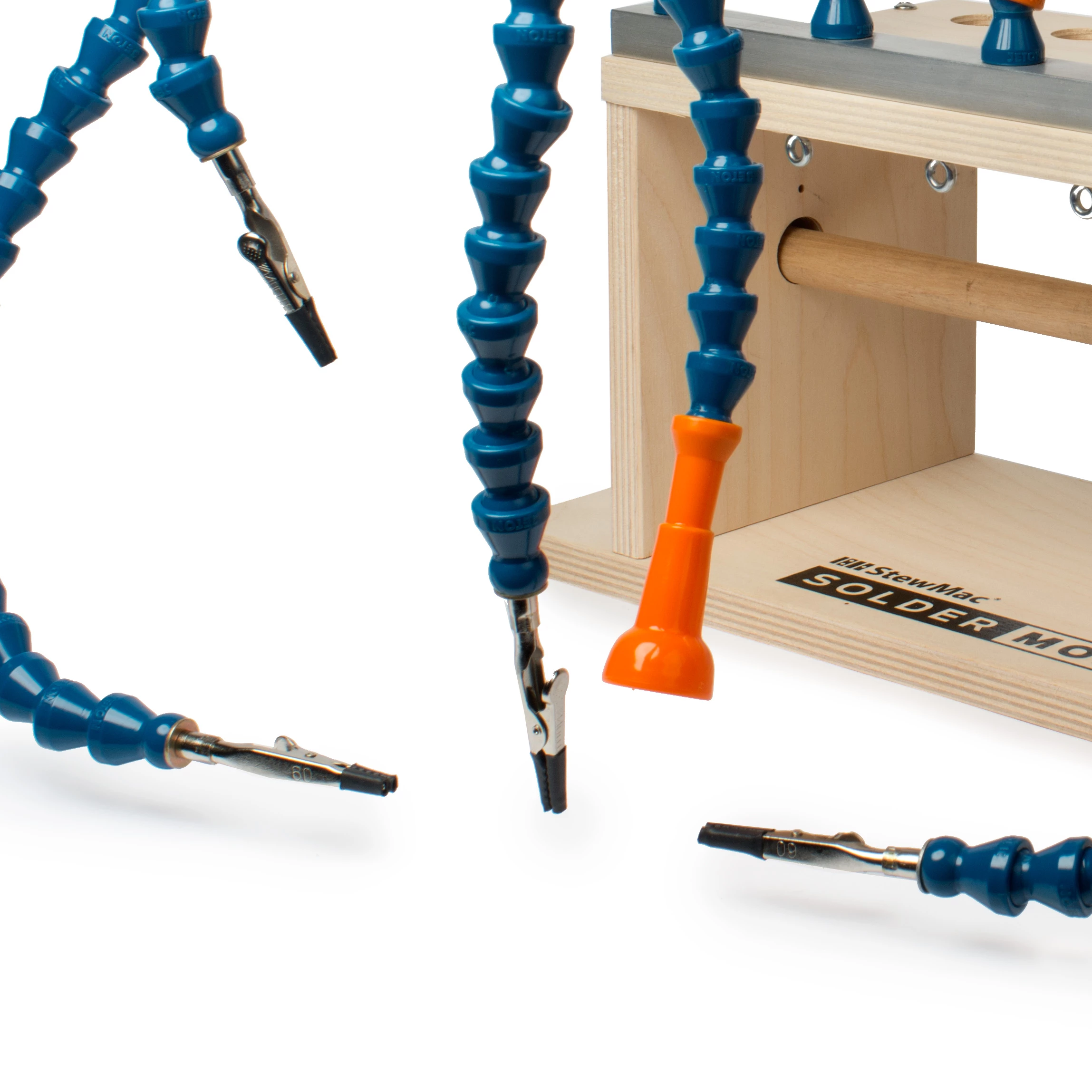 Solder smoke contains serious toxins. Soldering is close work, and those fumes are right in your face. The Solder Monster’s fifth arm is a vent tube that hooks to your shop vac, sucking the smoke into your vacuum’s filter (connection kit included). Put the intake tube near the solder joint, and vent away those poisons.
